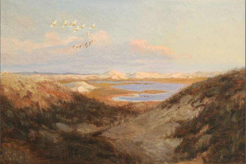 Landscape with migratory birds and dunes