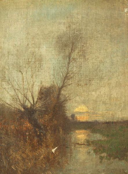 Bachlauf in herbstlicher Landschaft bei untergehender Sonne