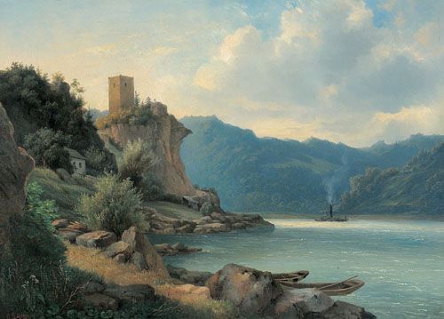 A Steamboat on the Danube, a Ruin on the Left
