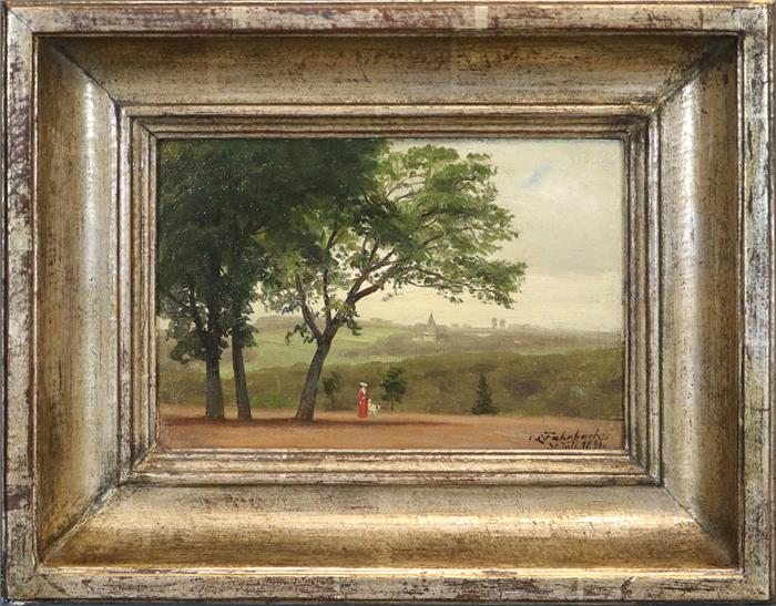 Studienhafte Darstellung einer Dame mit Hund vor Talsohle