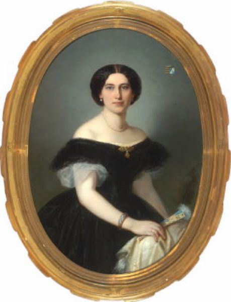 | Portrait einer jungen adeligen Dame im schwarzen Kleid vor neutralem Hintergrund | |