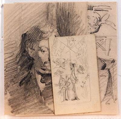 | Figurstudie samt två porträttstudier varav en föreställande Hugo Birger | |