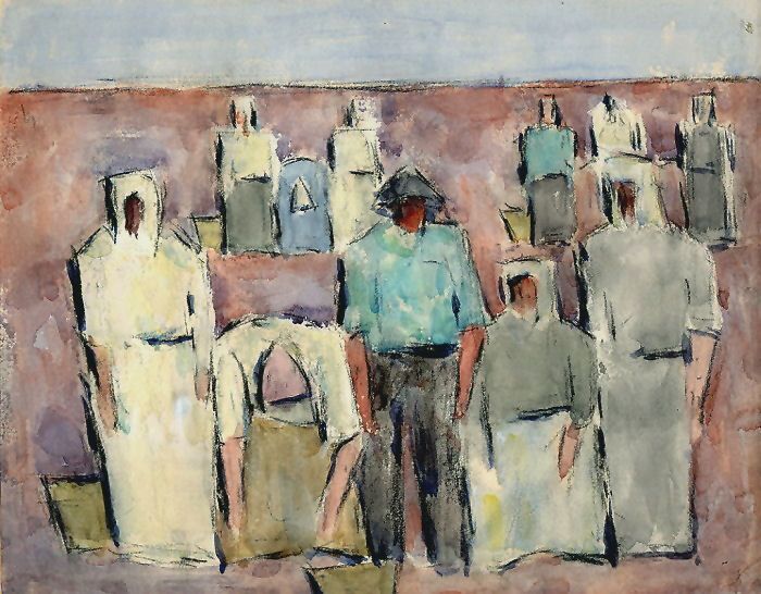 Frauen und Bauer auf dem Feld. 1962.