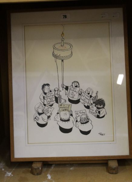 A Giles cartoon (to Max) with choirboys singing round a cake