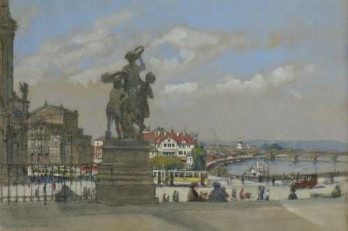 | Dresden - Blick von der Augustusbrücke auf die Semperoper und die Elbe. | |