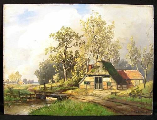 | A winter landscape with a cottage by a stream, also a companion painting (a pair) | |