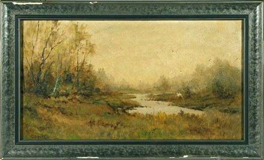 Kleiner Bach in moorigem Gelände zwischen Büschen und Bäumen