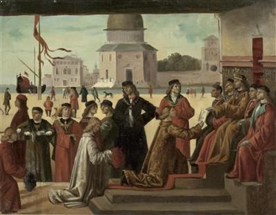 | Ankunft der englischen Gesandten am Hof des Königs der Bretagne (aus der UrsulaLegende) | |