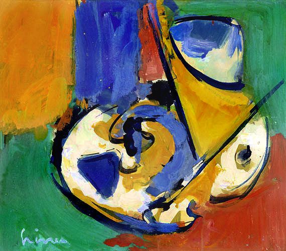 Komposition ocker-blau-grün.