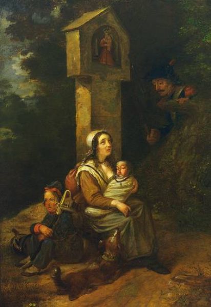 | Französischer Soldat entdeckt ruhende Mutter mit Kindern an einem Marterl. | |