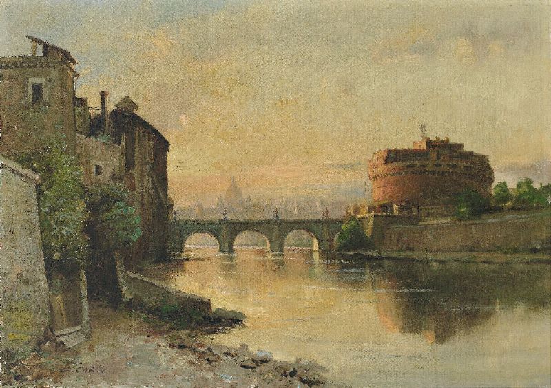 Blick über den Tiber auf die Engelburg, im Hintergrund der Vatikan.
