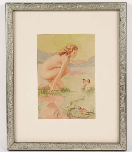 kneeling nude by reflecting pond