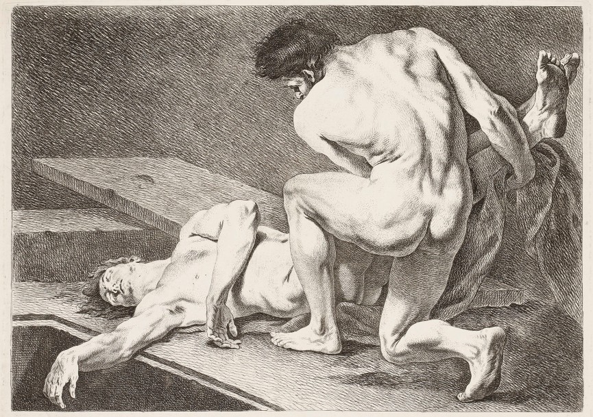 Six figures académiques dessinées et gravées par Carle Van Loo…