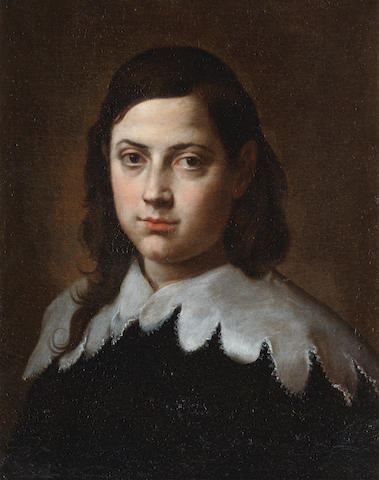 Portrait of a young boy, bust-length, in black costume with a white lace collar