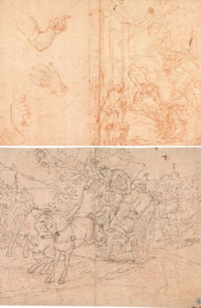 | Pen and brown ink, over an underdrawing in black chalk, on paper | |