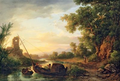 Italian River Landscape with Fishermen