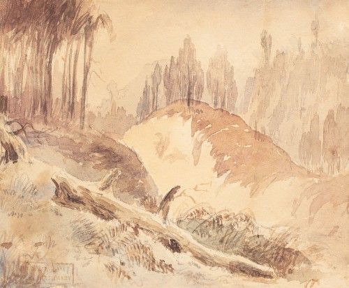 Pencil and watercolour on paper, on cardboad