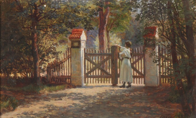 | View from Sorø with a young girl by the gates leading to Ankerhus | |