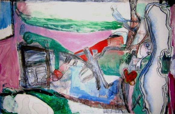 Acrylic ink and crayon on paper