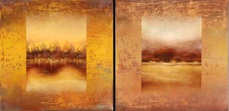 Pair of Landscapes titled "Fall Mist" and "Quiet Lake"