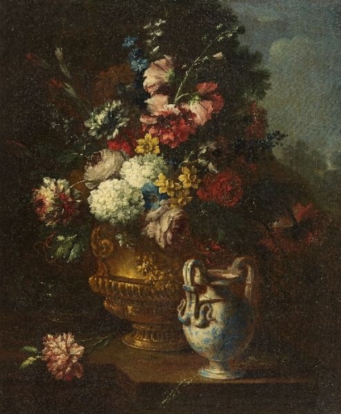 FLORALSTILL LIFE WITH VIEW OF A LANDSCAPE