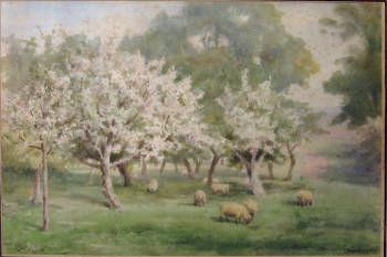 Orchard with sheep