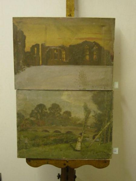 GIRLS IN SUMMER DRESSES IN A MEADOW NEAR A BRIDGE