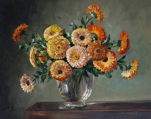 Marigolds in a glass vase