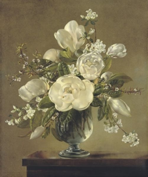 White blossom and magnolia in a glass vase