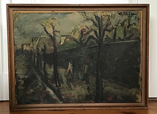City scenery with trees. Signed Valeur - 34.