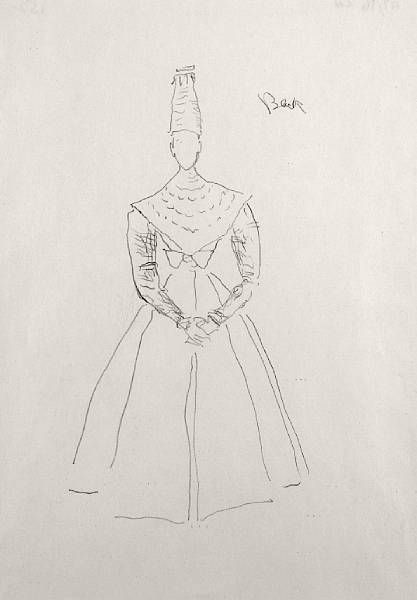 Costume design; Woman in a tall black hat