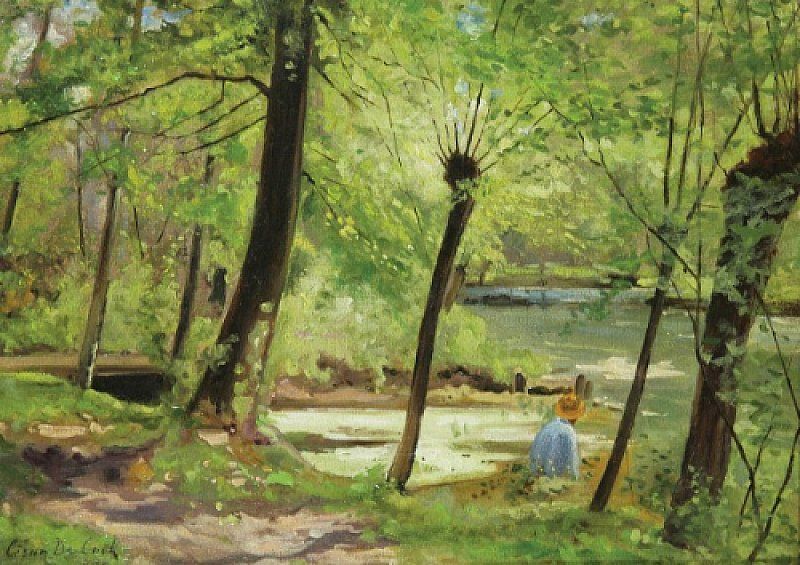Bebost landschap in Gasny-sur-Epte met de kunstenaar aan het werk
