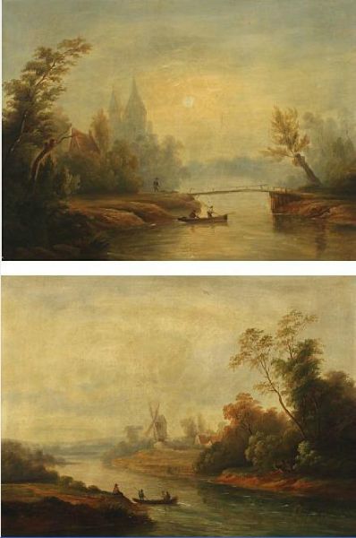 Two Dutch landscapes with persons by a river