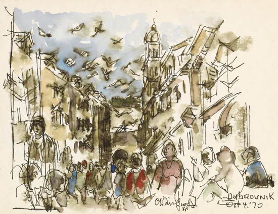 | Watercolor pen and ink and pencil drawings on Grumbacher Watercolor paper | |