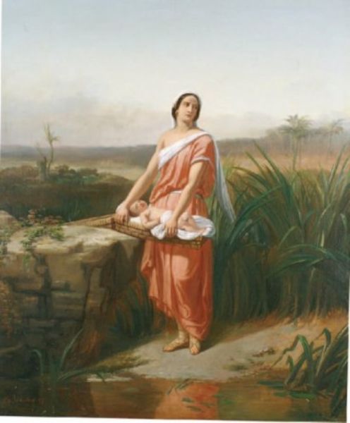 Moïse enfant et sa soeur Myriam au bord du Nil