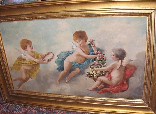 Putti with flower garlands
