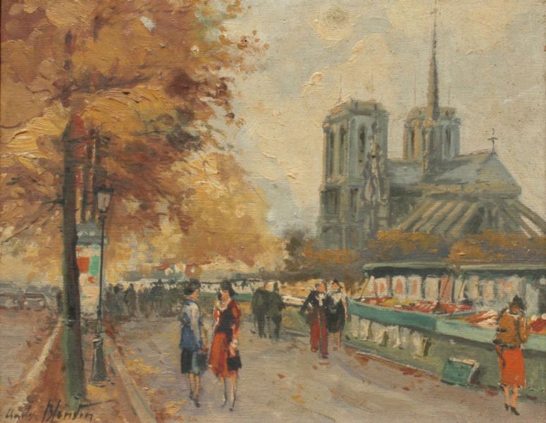 Parisian Street Scene on the Seine With the Cathedral at Notre Dame