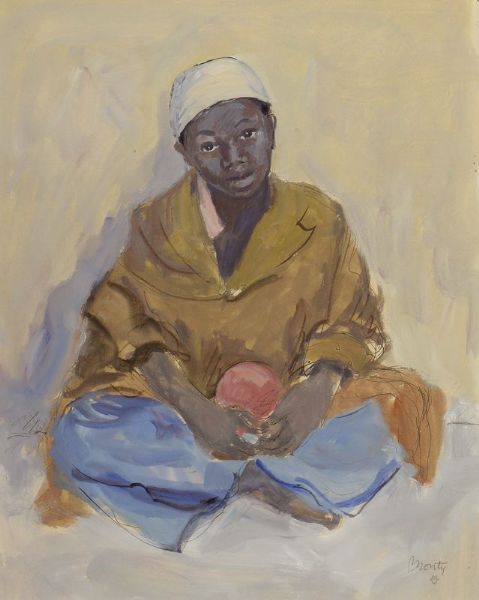 Jeune arabe accroupi tenant une balle