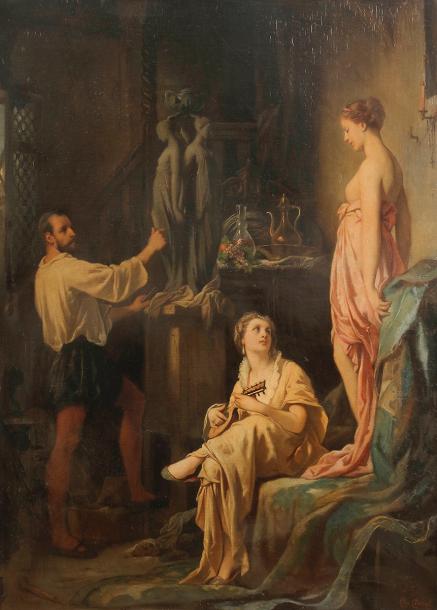 | Le sculpteur Germain Pilon dans son atelier sculptant les Trois grâces pour le monument funéraire contenant le cœur d’Henri II | |