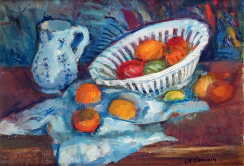 COUPE DE FRUITS ET PICHET DE FAÏENCE
