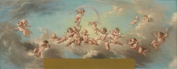 | Putti, projet de décor avec une découpe de forme rectangulaire dans la partie inférieure | |