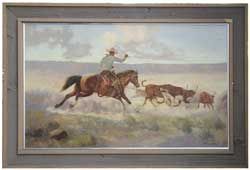 depicting a cowboy on a horse chasing cattle
