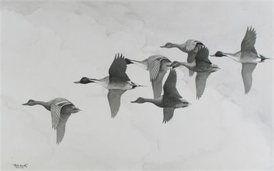 Swans in flight