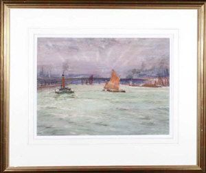 Sailing barges and paddle tugs on the Thames