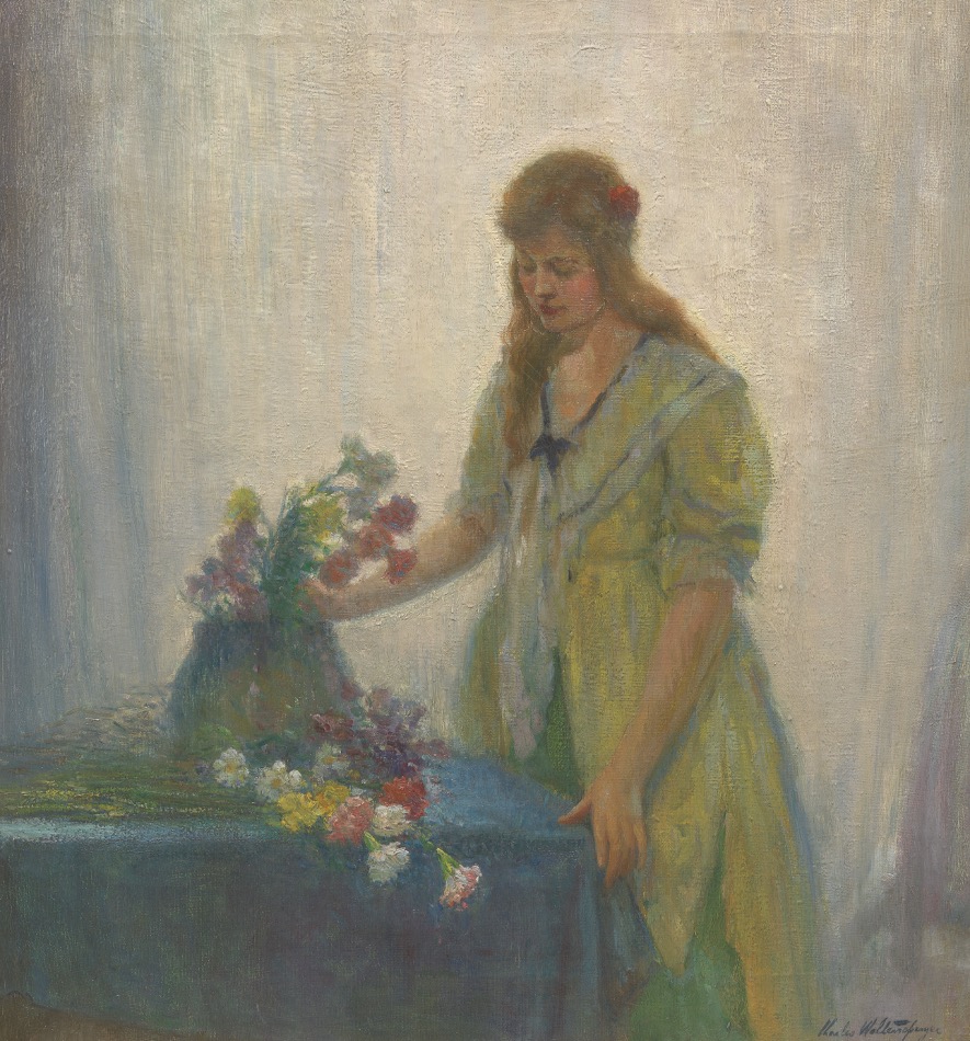 Woman arranging flowers