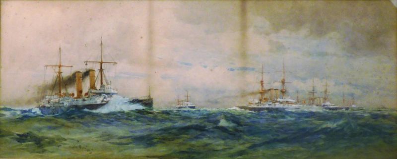 DOUBLE FUNNEL STEAMSHIPS IN CONVOY