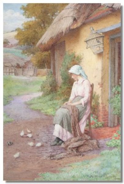 At the door of the fisherman's cottage