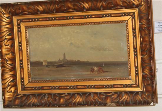 Seated figures on the beach at low tide