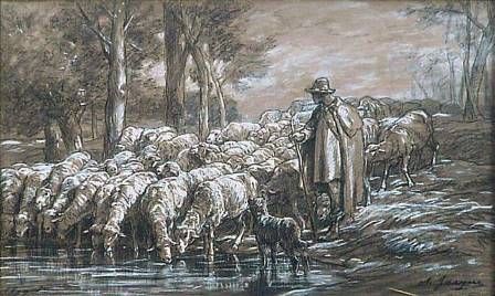 | BERGER ET SON TROUPEAU À LA MARE | |