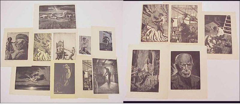 | portraits and occupational scenes including: "Bending the top M'st Stays'"; "Splicing"; "The Sailmaker"; "Of the South"; and "Li | |